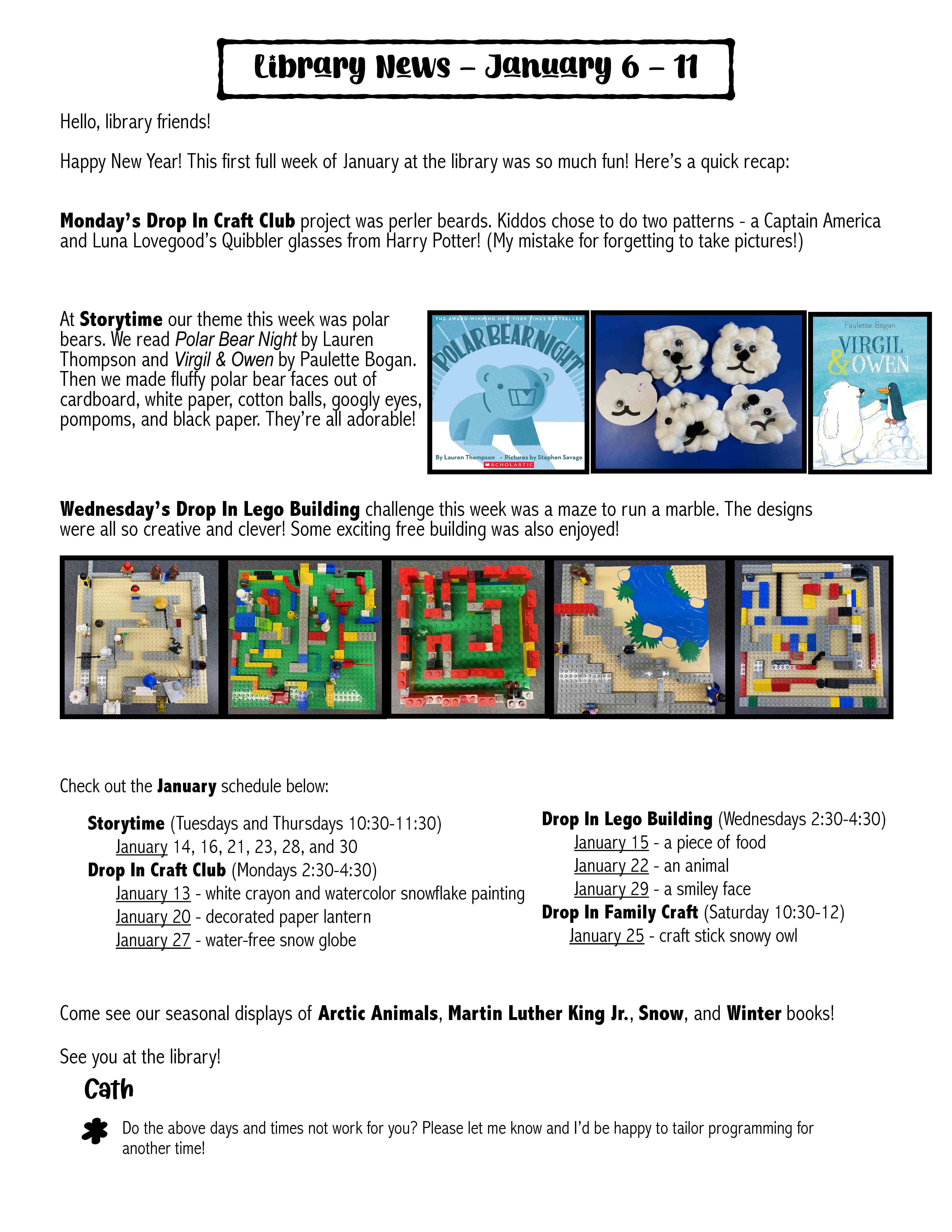 January 13 Newsletter Posted on January 13, 2025January 13, 2025 By jblackeynhs Share this content: Share this: Click to share on Facebook (Opens in new window) Facebook Like this:Like Loading... Children's Programs Tags:Children's Programming, Gordon-Nash library, New Hampshire, New Hampton