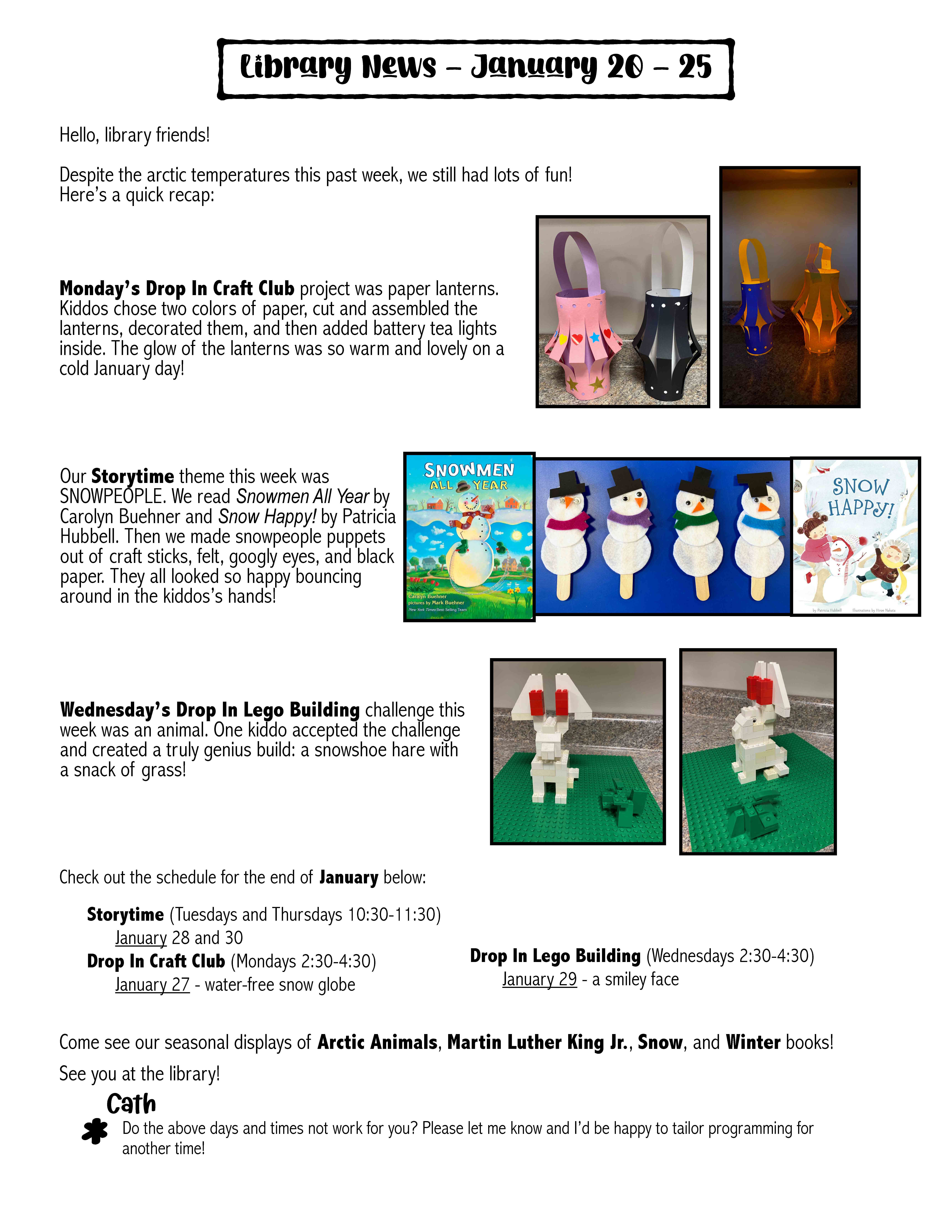 January 25 Newsletter Posted on January 27, 2025January 27, 2025 By jblackeynhs Share this content: Share this: Click to share on Facebook (Opens in new window) Facebook Like this:Like Loading... Children's Programs