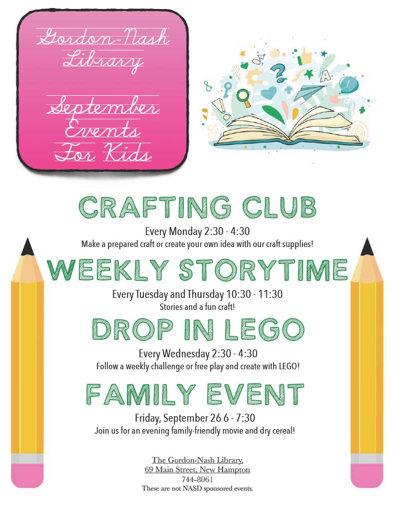September 29-October 6 Newsletter Posted on October 6, 2025October 6, 2025 By jblackeynhs GNL Newsletter Sept 29 – Oct 6Download Share this content: Share this: Click to share on Facebook (Opens in new window) Facebook Like this:Like Loading... Children's Programs